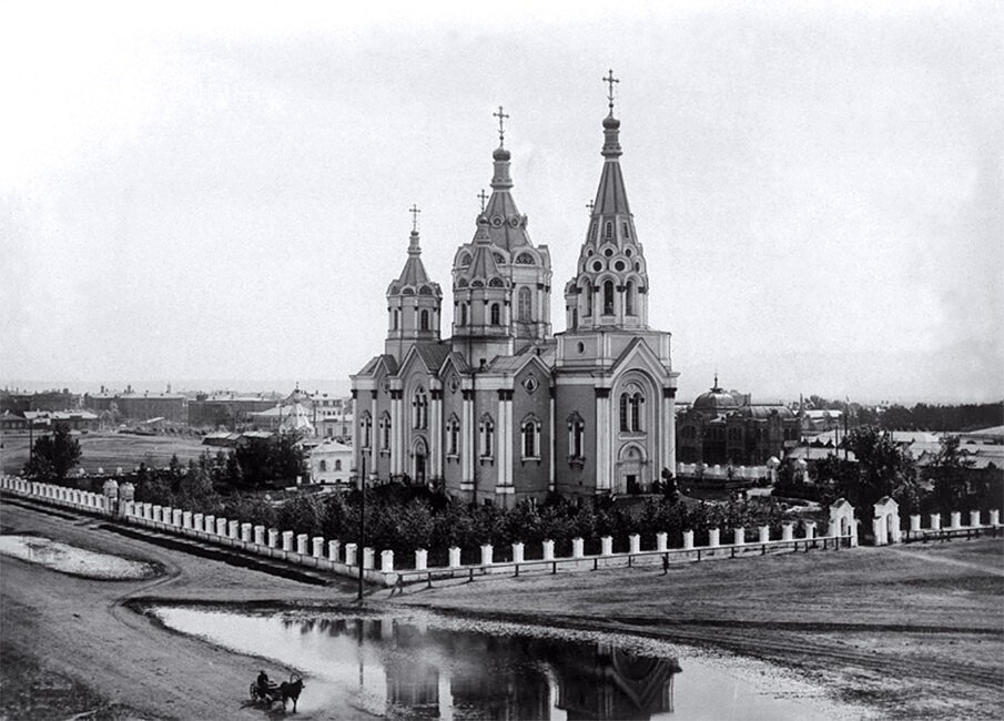 Кафедральный собор во имя Рождества Пресвятой Богородицы — самый крупный православный храм дореволюционного Красноярска, снесённый в советское время. Пятый по счёту каменный храм города. Построен по проекту архитектора Константина Тона в 1845-1861 годах одновременно с московским Храмом Христа Спасителя. Состоял из храма Рождества Пресвятой Богородицы и приделов. Храм был заложен 15 июля 1845 года на Новособорной площади. (Ныне Площадь революции). Был взорван в 1936 году. Воскресенский Храм был заложен в 1761 г. на Стрелке, на месте обветшавшей к тому времени деревянной Преображенской церкви. В приделах Воскресенского собора были похоронены многие известные люди: купец Власьевский, крупный золотопромышленник, меценат Петр Иванович Кузнецов, на чьи средства была поставлена каменная колокольня и водружен колокол весом в 1 000 пудов, командор Николай Петрович Резанов - полномочный посол Японии, участник кругосветной экспедиции. В 1935 г. собор был передан крайсовету для организации в