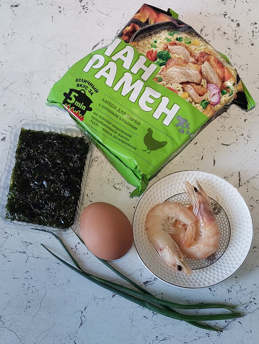 Иногда я залипаю в корейские дорамы, а они там постоянно что- то едят. Мне конечно же тоже сразу хочется чего-то этого, но всегда лень. В такие периоды, меня спасает рамен. Готовится он быстро и из простых ингредиентов. Сегодня я нашла в холодильнике: Креветки Зелёный лук Лапша для рамена Яйцо Водоросли нори Креветки можно заменить на ветчину или курицу. Яйцо заранее отвариваю 5 минут, что бы желток остался жидким. Креветки я так-же заранее отварила 2 минуты в подсоленной воде. Лапшу для рамена отвариваю по инструкции указанной на упаковке. Пока лапша вариться , нарезаю зелёный лук, очищаю яйцо и Креветки. Нори рву руками на небольшие кусочки. Готовую Лапшу перекладываю в тарелку для подачи и сверху выкладываю все подготовленные ингрдиенты. Вот так, всего за 10 минут у меня получился очень вкусный рамен) Всем приятного аппетита и спасибо, что остаётесь со мной на канале🌻