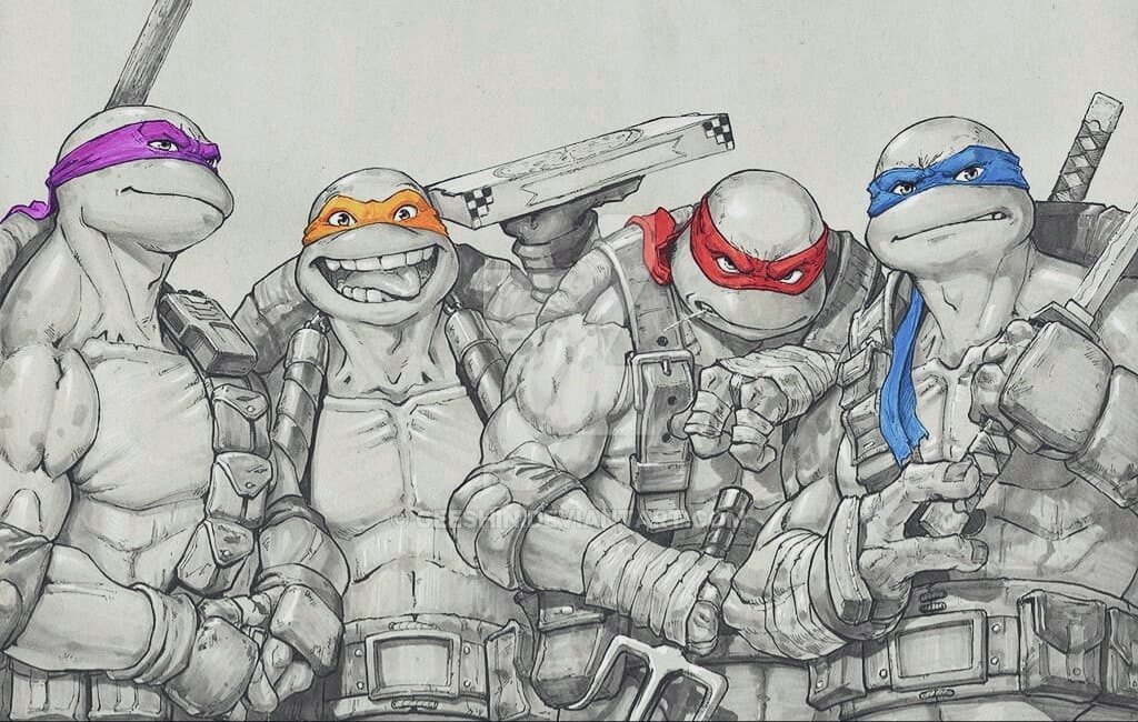 Teenage Mutant Ninja Turtles (TMNT) - Подростки Мутанты Ниндзя Черепахи (Черепашки-ниндзя). Это целая культура. Создатели: Кевин Истмен и Питер Лэрд. Четыре черепашки из-за случайного воздействия химических веществ мутировали в больших, сильных, напоминающих людей, существ. Также под воздействие химикатов попала крыса - Сплинтер (по некоторым версиям в прошлом человек). Он вырастил черепах как своих сыновей, дал им имена, обучил боевому искусству ниндзюцу. Вместе они защищают свой город от зла. Леонардо. Лидер команды. Хороший тактик, рассудителен, спокоен. Оружие: Катаны. Повязка: синяя. Рафаэль. Дерзкий, вспыльчивый. Готов идти в бой против превышающего по силе врага. Оружие: саи. Повязка: красная. Донателло. Умный, изобретательный. Часто использует технологии в бою и повседневной жизни. Оружие: посох бо. Повязка: фиолетовая. Микеланджело. Весёлый, позитивный. Всегда придет на помощь и поддержит в трудную минуту. Оружие: нунчаки. Повязка: оранжевая. Сплинтер. Мудрая крыса, обла