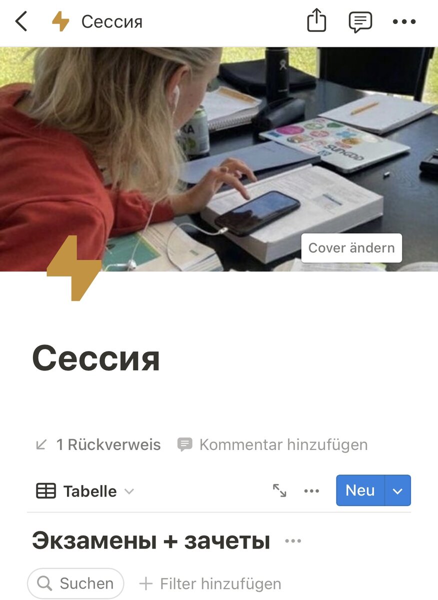 *сделаем вид, что я не пропустила несколько недель* Вчера я НАКРНЕЦ-ТО создала страничку в Notion для сессии, которая работает! Я все пыталась использовать чужие templates из видео на ютуб, но каждый раз забрасывала их выполнение — значит, они мне не подходили. Вчера потратила больше часа на составление своей базы данных, но зато она удобная 🤌🏻 Итак, вчера подготовка к сессии сдвинулась с мертвой точки: благодаря Notion всё более менее структурировала и ещё больше убедилась, как много нужно делать и учить надо 🙈 Пока написан только 1 конспект 🗒️ Второе — начала готовиться к контрольной по чтению немецкого. Она уже в эту субботу 🙂 В целом, должно быть не очень сложно, учитывая, что в каждом Пензуме по 10-15 слов, а самих Пензумов всего 8 👌🏻 Конечно, учитывая, что я вчера осталась дома, сделано не очень много, но я все равно рада, что начало положено. Итог за вчера 👇🏻