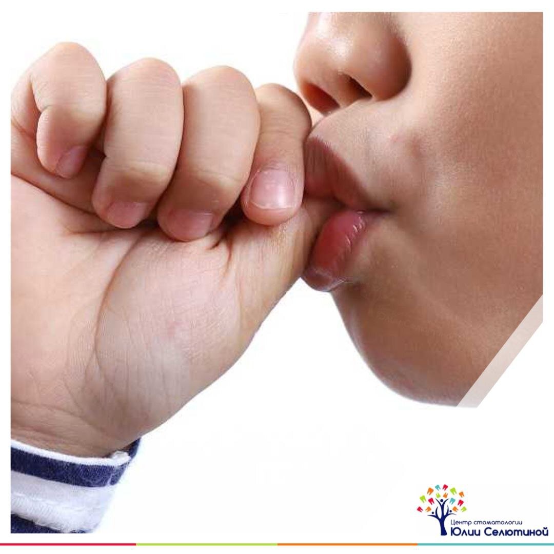 Поэтому, всегда следите за своими детьми и их привычками. Постоянное сосание пальца опасно и в молочном, и в постоянном прикусе. • Создается давление на нижнюю челюсть, что приводит к задержке ее развития; • Формируется открытый прикус и протрузия зубов (их чрезмерное отклонение вперед); • Меняется не только положение центральных зубов, но и форма верхней челюсти (она сужается); • Формируется ротовое дыхание, слизистая полости рта может пересыхать, что негативно сказывается на здоровье зубов. Открытый прикус — это когда в состоянии покоя при сомкнутых челюстях жевательные зубки контактируют, а центральные зубки между собой НЕТ. Образуется щель между зубными рядами во фронтальной зоне, губы не смыкаются, и поэтому рот пациента всегда полуоткрыт или открыт Нарушается функция жевания, дыхания и речи. Как отучить ребенка от сосания пальца? Для начала понять, чем вызвана эта привычка. Чаще всего сосательный рефлекс — это защитная функция от стресса, страхов, нервных потрясений, смены пс