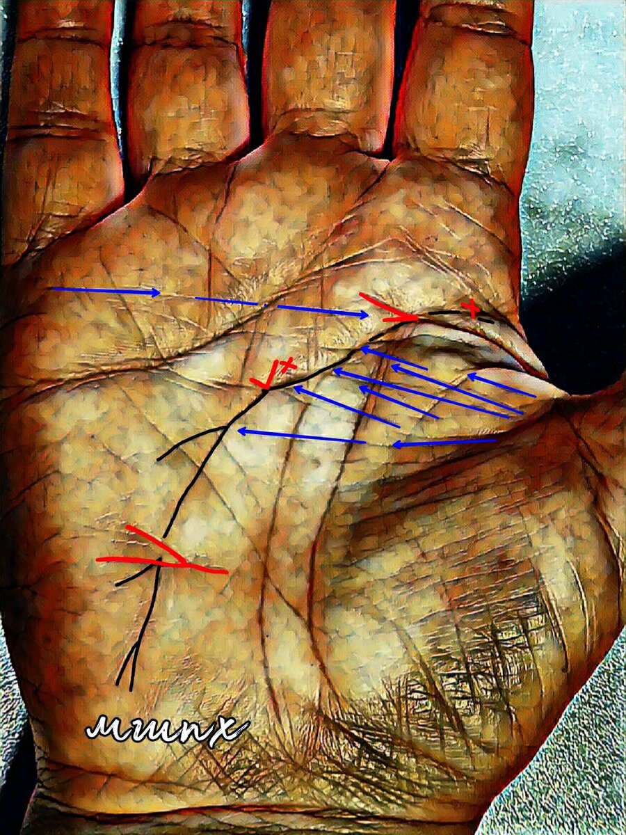 По некоторым источникам левая рука может больше говорить о жизни мамы, а правая о жизни отца. Понятно, что в данных заключениях есть погрешности, требующие более тщательного исследования, но тем не менее я наблюдала подобные картины.
