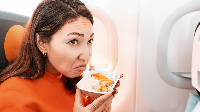 Многие считают, что они очень удачно придумали: купить в аэропорту любимый сендвич с рыбой или картошечку фри, а не есть разваренные макароны, которые выдаются на борту. Однако соседи таких предприимчивых пассажиров точно не любят.
