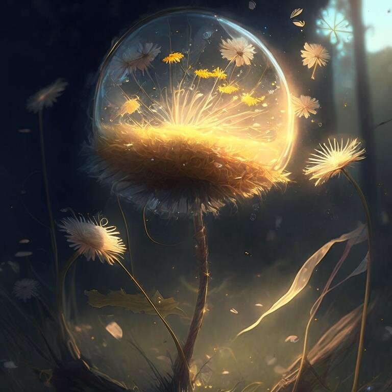 Однажды весной, когда все вокруг начинало зеленеть и цвести, на поляне возле леса вырос красивый, жёлтый одуванчик. Он был такой яркий и солнечный, что все проходившие мимо не могли не заметить его. Однажды к одуванчику подошел маленький мальчик. Он был очень грустный и потому решил попробовать загадать желание. Мальчик закрыл глаза, сделал глубокий вдох и выдох, а затем сильно дунул на одуванчик, хоть тот был ещё ослепительно жёлтым... Поначалу ничего не произошло, но затем мальчик заметил, что одуванчик начал медленно таять. Сначала он испугался, но потом заметил, что из цветка начали выходить яркие лучики света. Лучики стали все ярче и ярче, пока не превратились в настоящий волшебный портал. Мальчик решил пройти сквозь портал и оказался в сказочном мире. Вокруг него были яркие цветы, зеленые деревья и прекрасные птицы. Мальчик был в восторге от всего, что увидел. Он прошел по лесу и наконец оказался на поляне, где рос волшебный одуванчик. Он поблагодарил цветок за свое приключени