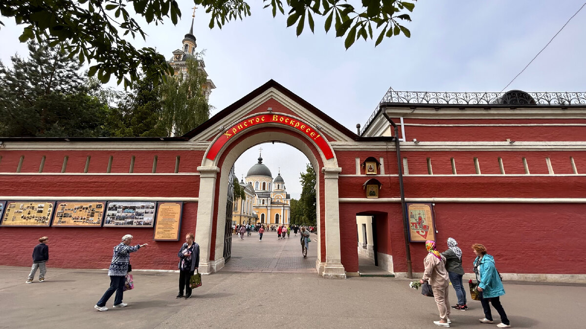 Затем мы обошли все иконы монастыря с ликом святой Матроны и приложили нашу мирницу к намоленным образам. Чтобы приложиться к вышитой иконе на северной стене Покровского храма, пришлось отстоять очередь. Еще большую очередь простояли, чтобы зайти в храм и прикоснуться к раке с мощами Матронушки.