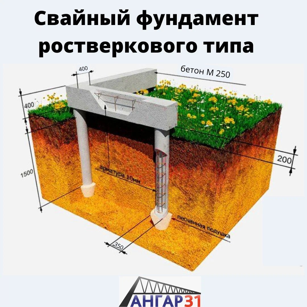 При строительстве быстровозводимых ангаров Ангар 36 изготавливает ростверк 400х400 мм, что гарантирует долговечность, прочность, надежность и устойчивость постройки при любых условиях. К сожалению, конкуренты и здесь экономят, делая ростверк всего лишь 300х300 мм. По своей сути ростверк – это стальной оцинкованный пояс, связывающий воедино свайную конструкцию фундамента бескаркасных сооружений. Главное назначение ростверка собирать и распределять нагрузку с наземной конструкции на подземные колонны и сваи. для максимальной прочности ростверка необходимо прочно и жестко соединять узлы при строительстве бескаркасных ангаров. Преимущества ростверка 400х400 от "Ангар 36" - высокая прочность основания бескаркасного сооружения; - долговечность и надежность фундамента; - возможность установки на легких песчаных, плотных глинистых и подвижных болотистых почвах; - низкая стоимость и короткий этап подготовительных работ; - возможность монтажа на глубоко промерзающих почвах. Ангар 36 осуществляет