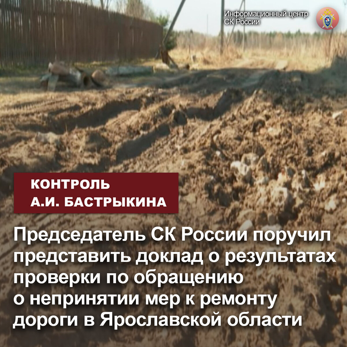 Председатель СК России поручил представить доклад о результатах проверки по обращению о непринятии мер к ремонту дороги в Ярославской области