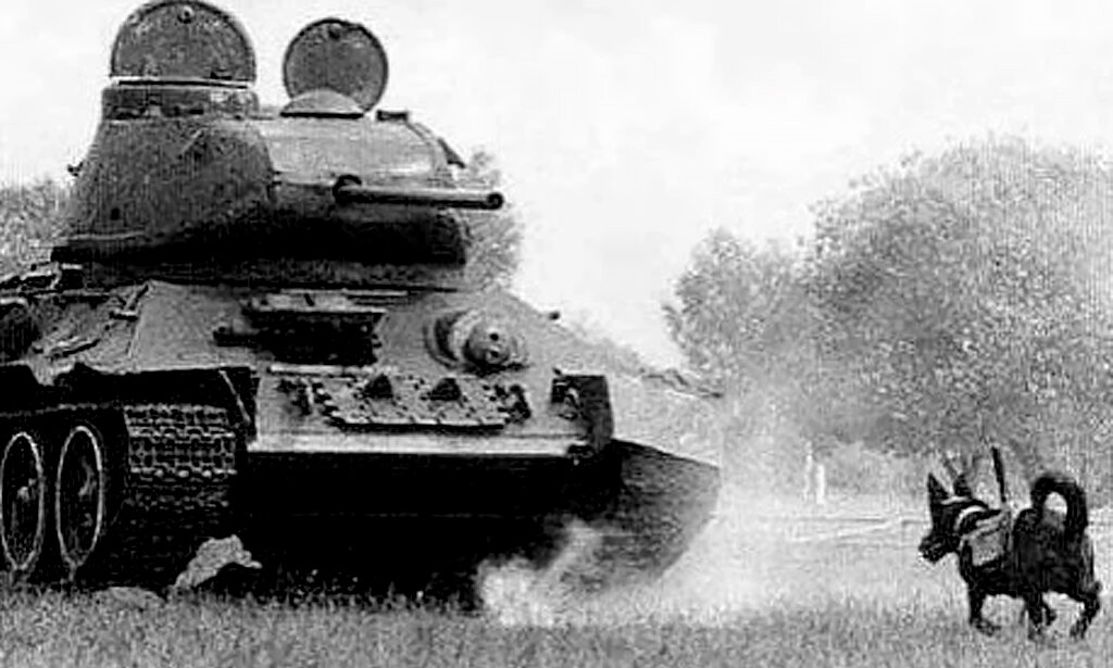 В человеческих войнах участвуют не только люди. К сожалению, братья наши меньшие также вынуждены отдавать свои жизни. В период Второй мировой войны руководителям пришла в голову идея — а почему бы не задействовать собак? В Советском союзе решили обучить животных, чтобы сделать из них идеальное противотанковое оружие. Ряд псов использовали и для решения других задач — некоторые были своего рода курьерами (доставляли медицинскую помощь и продовольствие), другие — искали мины. Противотанковых собак долго и упорно тренировали — их учили заходить с задней части танка, чтобы не попасть под пулеметный огонь неприятеля, обучали проползать под грозной техникой и оставлять взрывчатку под днищем боевой машины. Сначала на бомбах ставили таймер или активировали их дистанционно. Но потом стратегию ведения боя изменили — заряд детонировал при соприкосновении собаки с вражеской техникой. Первый бой собак против немцев завершился провалом. Животных натренировали заползать под танки, работающие на дизе