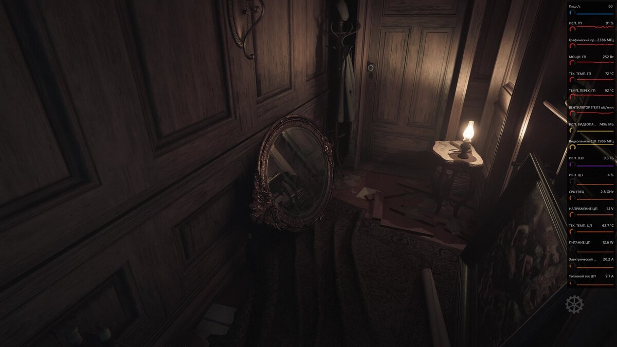 Начнем с забавного, а именно с того, какие системные требования разработчики заломили для своей игры. Уточню, что финальная версия действительно может значительно отличаться в плане производительности из-за, скажем, добавления дополнительных трассированных эффектов, но в данный момент найти отличия в изображении Layers of Fear с трассировкой и без нее можно только тогда, когда на экране есть зеркало.