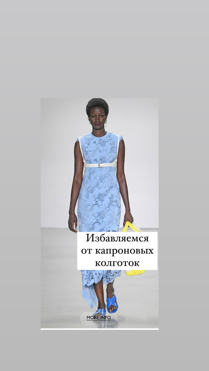 Весна, плавна перетекает в лето! За окном + 25 На улицах города женщины в черных колготках, изнывающие от жары. Излюбленная тема, капроновые колготки цвета «загара» (bronze). При всем при этом никого не смущает , что у девушки остаются белые руки :) и выглядит это комично ! Что делать,если вас смущают незагорелые ножки? Легко эту проблему можно решить с помощью - автозагара либо в салоне, либо проверенных марок. - жидких колготок (виртуальных чулок) они создают эффект колготок 5-10 den Так же корректируем этот ньюанс при помощи одежды: - юбки/ платья ассиметричной длинны - юбки/ платья с разрезами - юбки/ платья в длине миди - прозрачность - разные длины, в одном образе - облегченный деним - пижамные , льняные костюмы