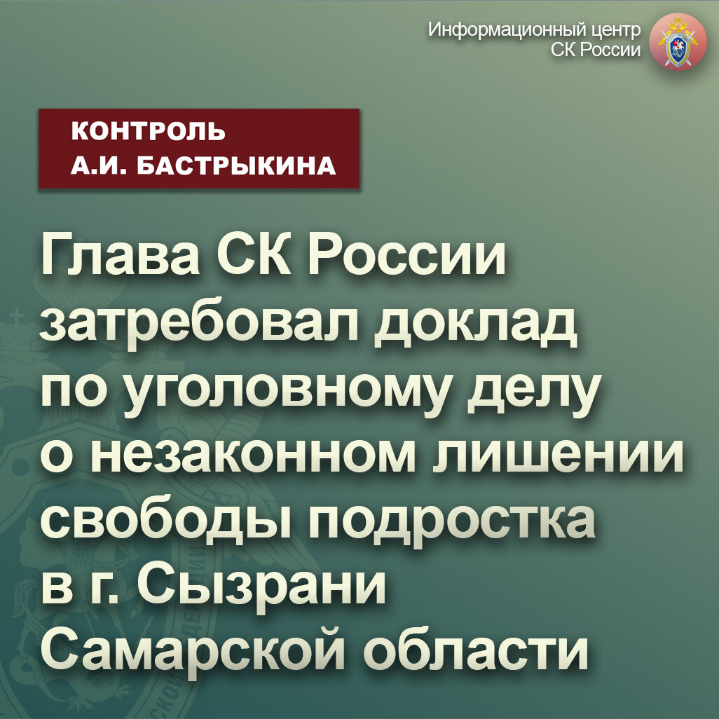 Глава СК России затребовал доклад по уголовному делу о незаконном лишении свободы подростка в г. Сызрани Самарской области