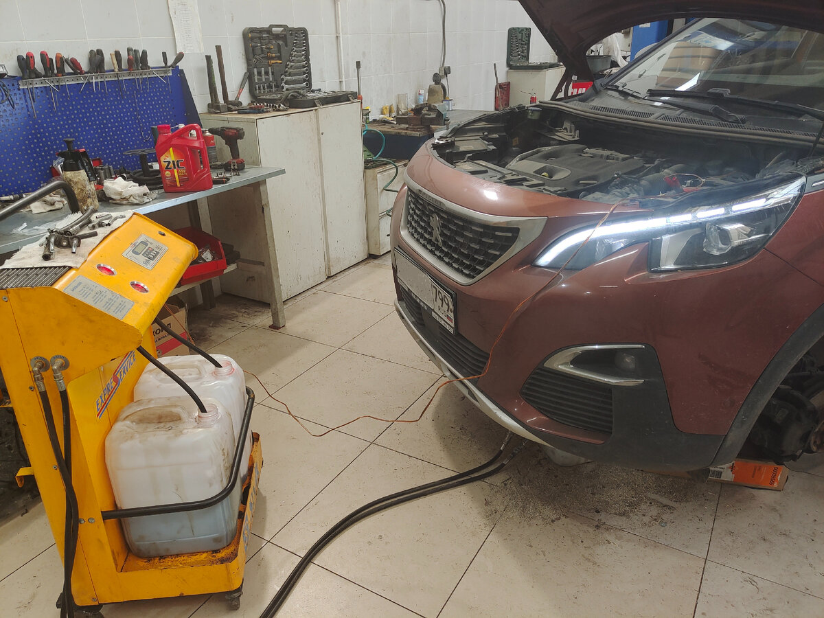 Во многом благодаря маркетологам, в регламенте работ ТО у Пежо-Ситроен нет сервисной операции по замене масла в АКПП. В технической документации написано, что масло в автоматической коробке залито на весь срок службы автомобиля. Мы люди взрослые и понимаем, что» вечных» жидкостей пока не изобрели и через некоторое время даже самое качественное масло потеряет свои свойства. В автомобиле Пежо 3008 ( 2 поколение) используется 6 ступенчатый автомат компании Aisin, поэтому заходим на сайт производителя АКПП «Aisin Warner», где мы видим рекомендации по замене трансмиссионной жидкости раз в 30-40 тыс. км пробега. Есть два метода замены масла, частичная и полная аппаратная. В первом случае из 7,5 литров заправочного объёма сливают 3 литров старого (более не вытекает), заливают новое масло и отправляют клиента покататься, чтобы масло перемешалось, затем повторяют эту процедуру. Полная замена масла, или её ещё называют «аппаратная замена масла», подразумевает под собой замену 1,5 объёма масла АК