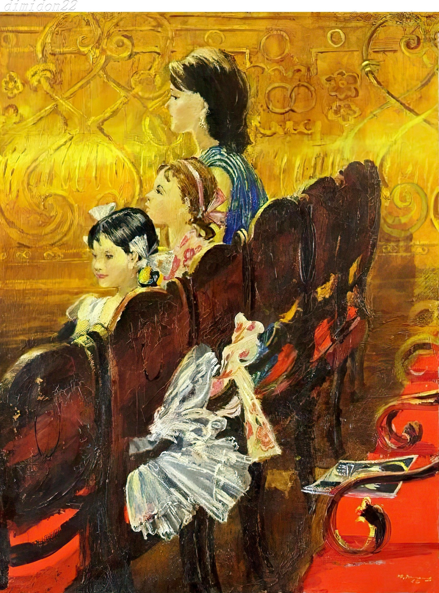Пименов Георгий (Юрий) Иванович (13 (26).11.1903, Москва - 06.09.1977, там же). «Ранние зрители». 1964 год. Холст, масло; 83 х 63 см.; (Государственный Исторический музей). Источник: Художники СССР 1950-1990 | ВКонта Все понятно без комментариев. Но интересно, что они пришли смотреть и в какой театр?