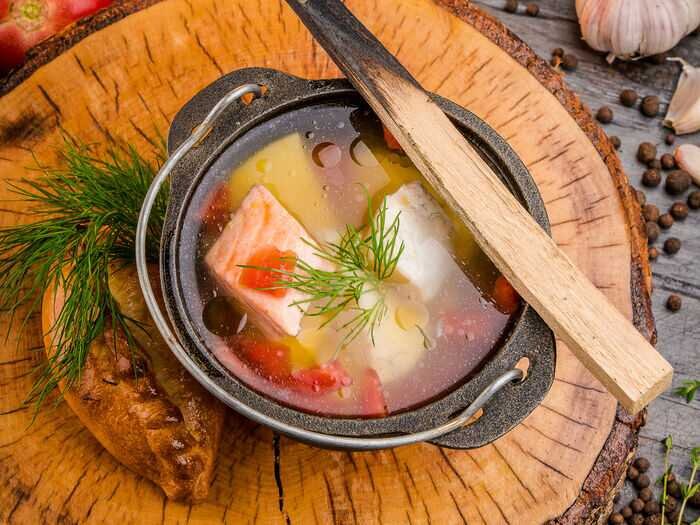 Ингредиенты для ухи: -700 грамм рыбы (одного или нескольких видов) - 2 литра воды -2 средних картофелины -1 морковь - 1 репчатый лук -50 мл водки (самогон, разбавленный спирт) - это примерно 1 полная стопка - лавровый лист и рубленная зелень по вкусу, а также соль, перец и другие приправы и специи. Шаг 1. Нарежьте картофель на маленькие кусочки после того, как вы его помоете и почистите. Измельчите морковь тонкими кружочками. Очистите лук, но не режьте его. Шаг 2. Добавьте морковь, картофель и целую луковицу в подходящую емкость с закипевшей водой. Хорошо перемешайте. Шаг 3. Рыбу очистите от жабр и чешуи, нарежьте кусками и хорошо промойте ее в проточной воде. Шаг 4. Добавьте рыбу в кастрюлю с овощами и варите все вместе 20 минут со времени закипания, периодически перемешивая. Посолите и добавьте перец по вкусу. Шаг 5. Уберите уху с огня и добавьте лавровый лист, горошек перца, а также другие приправы и специи по вкусу. Тонкой струей влейте водку и хорошо перемешайте. Алкоголь избавит