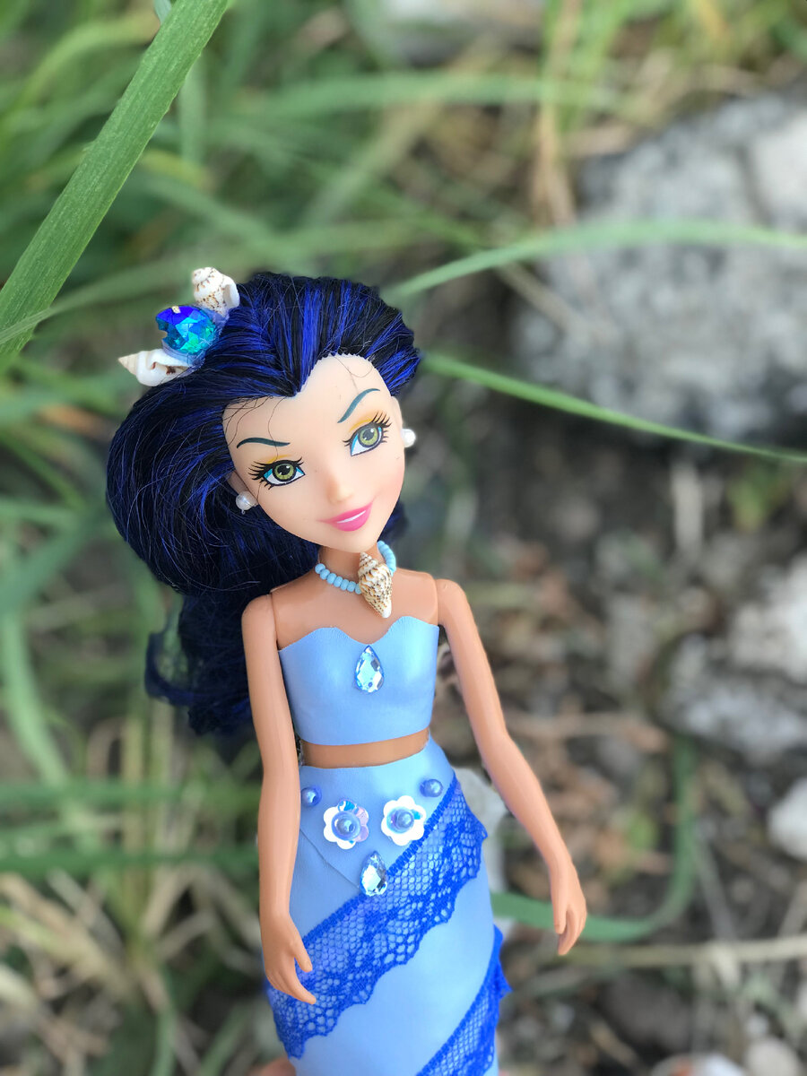 Всем отличного настроения , сегодня расскажу о своей давней задумке, которую, наконец, получилось реализовать. Я уже не раз говорила, что мелкие куклы и куклы типа Барби совершенно не мой формат , но и они порой появляются в моем доме . Что с ними делать и куда их пристроить - вечные вопросы, которые приходится решать. Еще зимой вместе с советскими куклами мне бонусом выслали барбиобразную девушку, взглянув на неё , я подумала - ну русалка . Убрала ее в коробку и только на днях вернулась к этой кукле . Достала бусины, ракушки, материал и вот , что вышло .