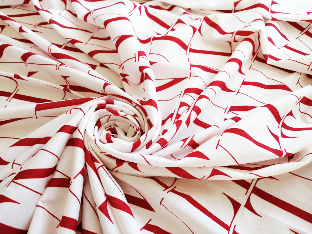 Ткань с крупным принтом в виде больших букв бренда.