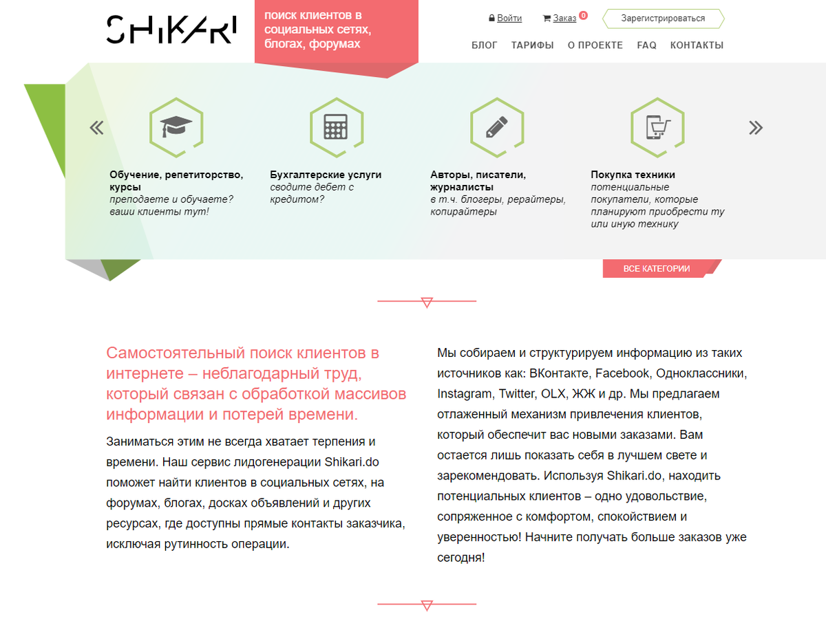 Сервис крайне полезен — он занимается поиском потенциальных клиентов в социальных сетях, блогах, форумах.Собственно, отсюда и название сервиса - «shikari» с английского переводится как «охотник».