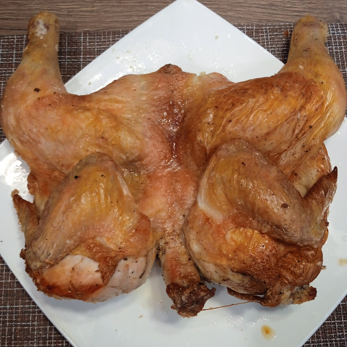 - Курицу хорошо помыть снаружи и внутри. Затем высушить бумажным полотенцем. Разрезать грудину пополам, раскрыть тушку так, чтобы она стала плоской.