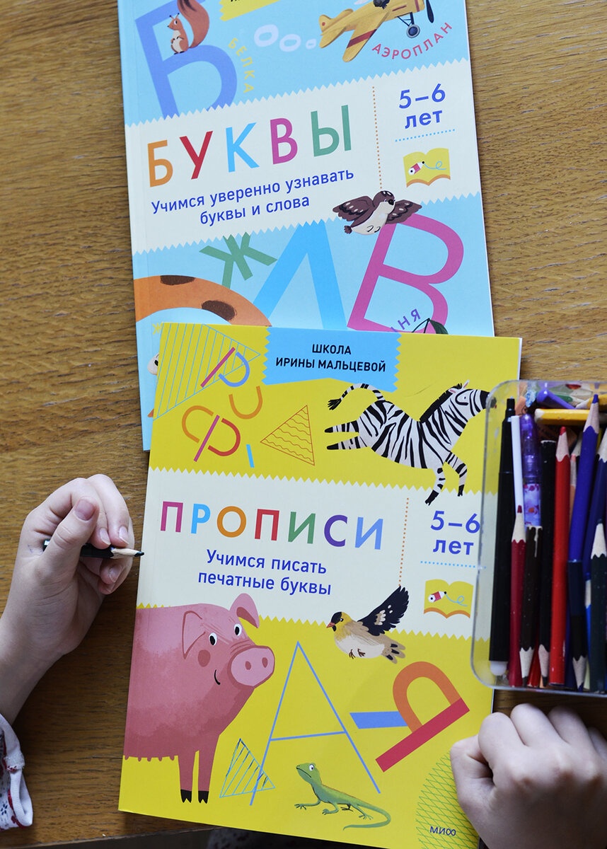Совсем скоро моя дочка пойдет в первый класс. На подготовительные занятия в школе она не ходила, занималась в детском саду и дома. И сейчас, не торопясь, в своем темпе, я продолжаю с ней готовиться к школе по разным тетрадям и прописям. Недавно мы познакомились с серией «Школа Ирины Мальцевой», выпускаемой издательством МИФ, и изучили первую брошюру — «Буквы. Учимся уверенно узнавать буквы и слова». Тетрадь качественная, но дочке было скучно из-за однообразных заданий. Занималась дочка не регулярно, и процесс шел тяжело и медленно. Сейчас ребенок изучил вторую брошюру этой серии — «Прописи. Учимся писать печатные буквы». И надо сказать, что эта тетрадь нам понравилась больше: дочка охотнее ежедневно занималась по ней и продвигалась значительно быстрее. В основе изучения букв лежит узор. Каждая печатная буква раскладывается на несколько простых элементов — это прямые горизонтальные, вертикальные, наклонные линии, волнистые и дуги. Из их сочетания и состоят буквы. Такой подход я встретил
