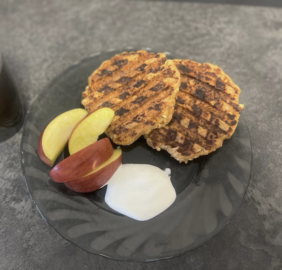 Сегодня хочу рассказать вам про вкусный рецепт перекуса. Он понравится и взрослым и детям! Яблочные вафли/блины (ингредиенты указанно на 1 порцию) Яблоко натереть на мелкой терке, добавить яйцо и муку, перемешать. Масло растопить, влить в тесто, перемешать. Выпекать в вафельнице вафли (при отсутствии можно просто на антипригарной сковороде как оладьи). Подавать с соусом (30-50 гр) Соус: Взбить в блендере натуральный йогурт 150 гр с 1/2 бананом + ягоды любые 2-3 ст.л Ставьте лайк и подписывайтесь на канал, чтобы не пропустить новые рецепты и полезные обзоры!