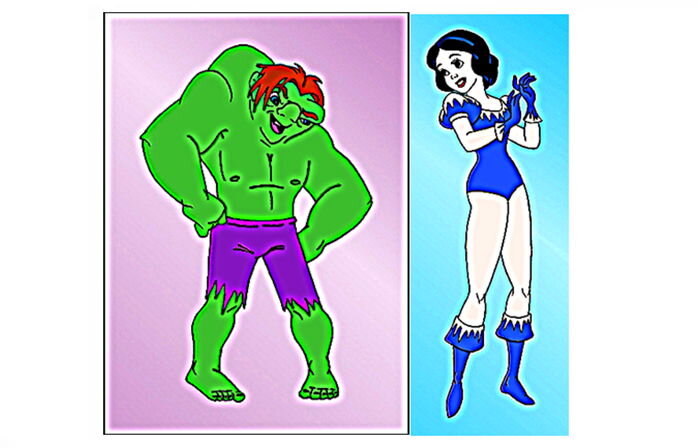 Художница mooky7 изобразила персонажей диснеевских мультфильмов в образах супергероев и плохишей из мс "Лига справедливости", "Бэтмен" и "Мстители", разместив работы в галерее иллюстраторов deviantart.com. Причём учитывала особенности внешности и характера или увлечения персонажей. Получилось очень круто и забавно. Единственный недостаток - сильный контраст в размерах артов. Но я постаралась сгладить его, объединив персонажей вышеназванных легендарных мс из детства на коллажах. Давайте же посмотрим, что получилось! Горбун - герой, а принцесса - злодейка Квазимодо видимо кто-то рассердил. Он позеленел и превратился в грозного Халка из команды Мстителей. Да, они оба -не красавцы, вызывают страх и им тяжело ужиться с людьми. Кстати, если брать оригинальный мс "Невероятный Халк", зеленый здоровяк там изгой, прямо, как горбун. Его обзывают чудовищем и ненавидят. А еще и Квази и Халк стремятся защищать друзей и прекрасную даму. Но вот, что общего у Белоснежки и злодейки Фрост? Я не знаю. Ест