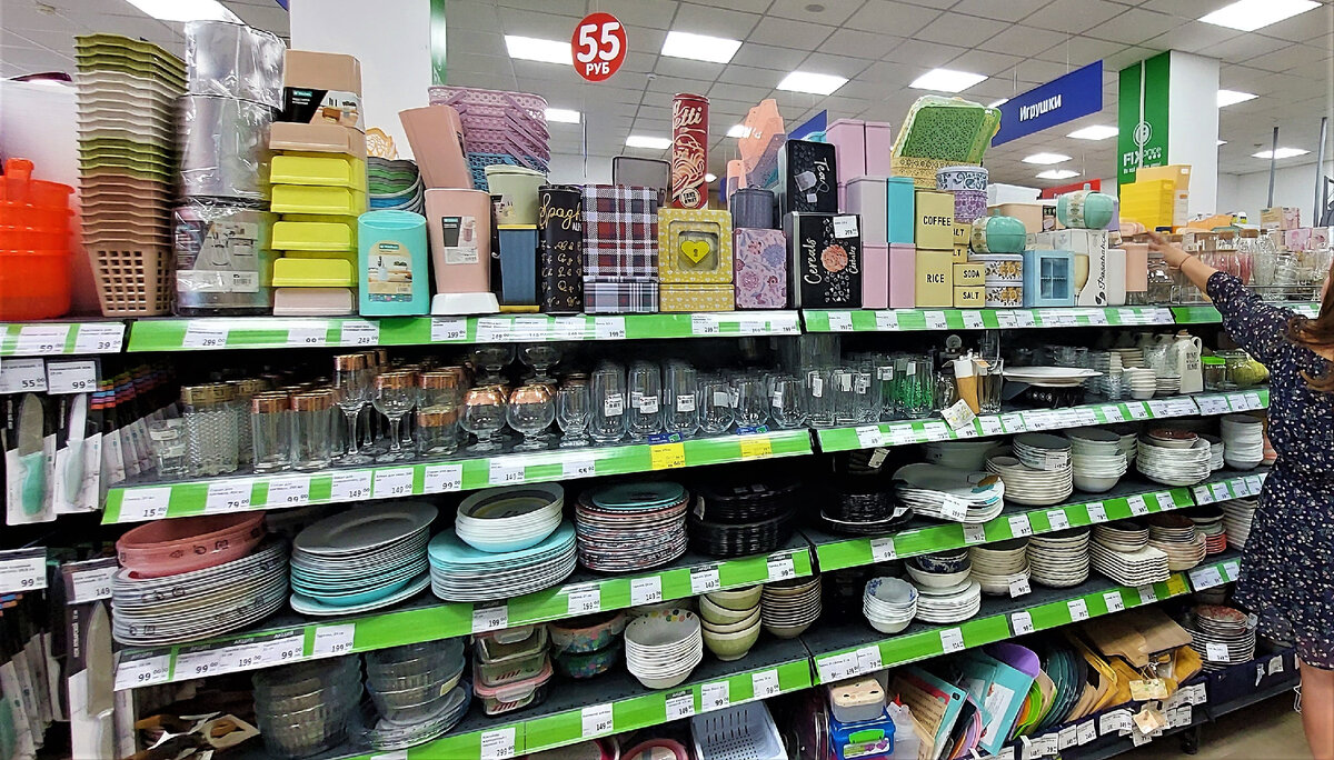 В отделе посуды привлекла внимание интересная новинка. Девушка первая ее заметила и долго рассматривала.