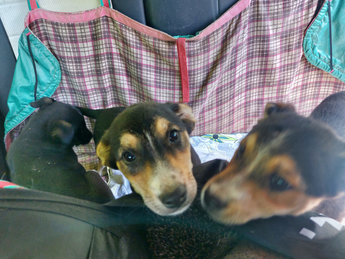 Заехала только посмотреть, чтобы приготовить им место и потом забрать. Но когда я увидела, как щенки выглядывают из-за колеса авто, все переиграла.