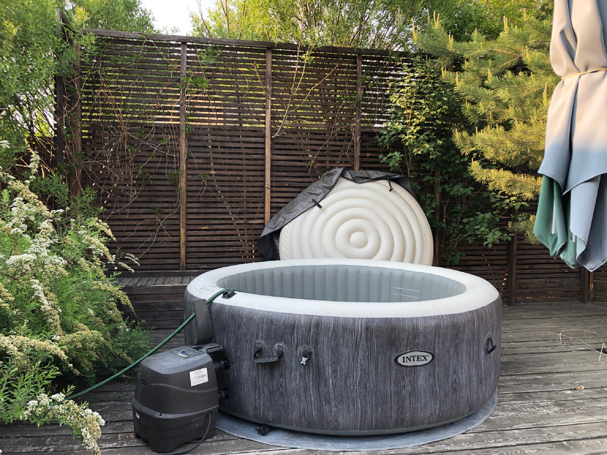 Начиная с ранней весны и до поздней осени есть у нашей семьи любимое развлечение: водные процедуры в надувном бассейне с гидромассажем. После дачных хлопот и забот приятно полежать в теплой бурлящей воде.