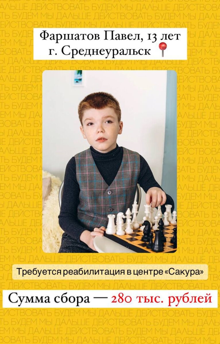 13-летний Паша — один из тройняшек в семье. Проблемы со здоровьем были и у его брата с сестрой, но они выздоровели, а у Паши появились осложнения. Недавно он научился проходить небольшие расстояния. Мальчику нужно укреплять мышцы ног, рук и спины. Родители по возможности возят его на реабилитацию, но каждый раз оплачивать самим дорогостоящее лечение не получается.