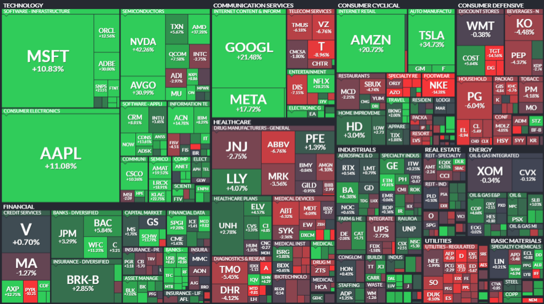Например, у Microsoft +10%, Google показал +15%, а Amazon и вовсе показал +20% роста.