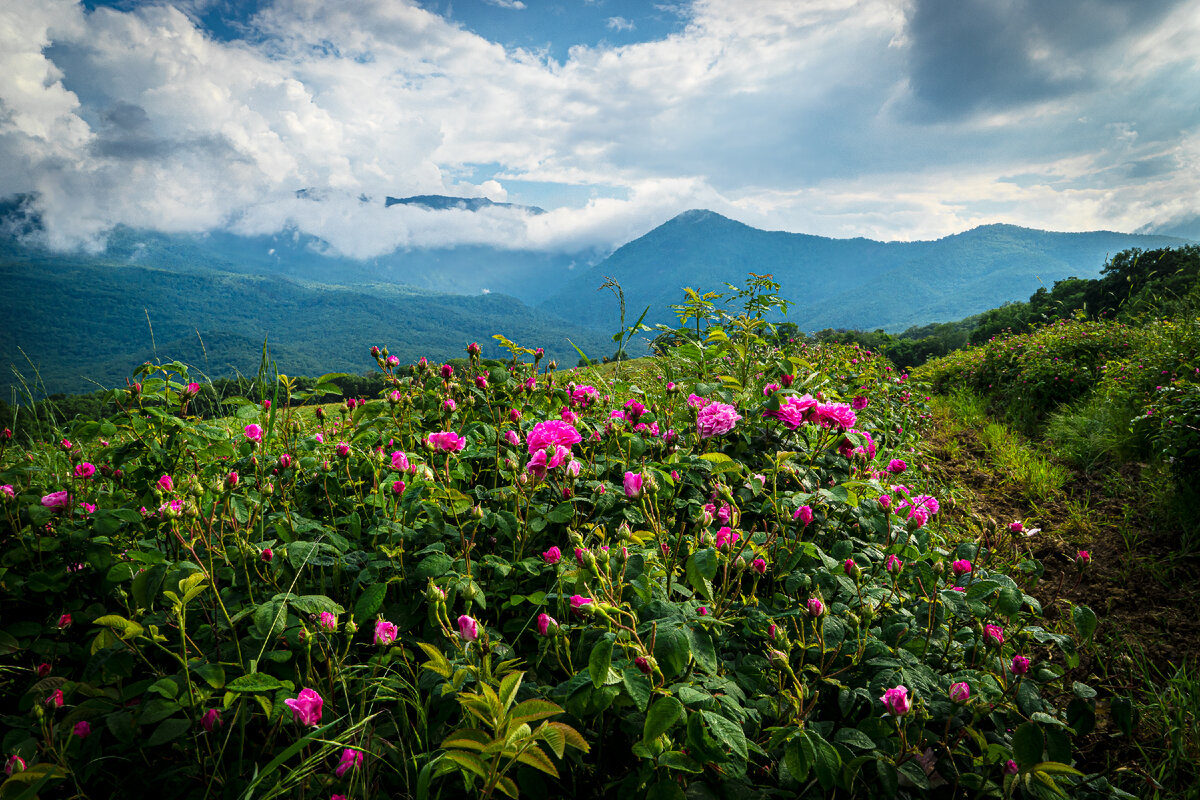 В Крыму много интересного и красивого. Место такое. Здесь, на относительно небольшом пятачке земли отметились десяток древних народов и цивилизаций. И не очень древних тоже. Например, в СССР две трети розового масла давал Крым. А розовое масло - это розы. Но не те, которые высаживают в садах и парках, с огромными, безумно красивыми головами и подрагивающими росинками на лепестках ранним утром. А специально выведенные эфирно-масличные сорта. Поля таких роз не выщипывают и не пропалывают до травинки, трактора только пропахивают между рядами специальные полосы, что бы сборщики могли пройти. Но зато таких роз ПОЛЯ! И в них есть своя, такая немного дикая красота. Одно из таких мест имеется прямо возле Алушты в поселке Розовом. Принадлежат поля предприятию со старорежимным названием “Алуштинский совхоз-завод”. Сам поселок ничего особенного собой не представляет – никаких архитектурных и прочих доминант. Правда, есть церковь - Храм в честь Введения во храм Пресвятой Богородицы – совсем но