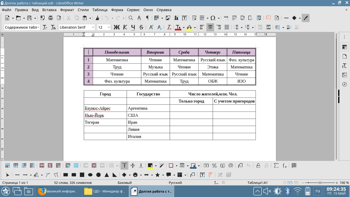 Таблица — совокупность связанных данных, хранящихся в структурированном виде в базе данных. Она состоит из столбцов и строк. В реляционных базах данных и плоских файлах баз данных, таблица — это набор элементов данных (значений), использующий модель вертикальных столбцов (имеющих уникальное имя) и горизонтальных строк. Для чего может пригодиться? Работа с формулами и числовыми данными Excel может выполнять практически всё: от простых операций вроде сложения, вычитания, умножения и деления до составления бюджетов крупных компаний. Работа с текстом Несмотря на то что некоторые возможности Word в Excel неприменимы, программа очень часто является базовой для составления отчетов. Организация баз данных Excel — табличный редактор, поэтому систематизация больших архивов не является для него проблемой. Кроме того, благодаря перекрестным ссылкам можно связать между собой различные листы и книги. Построение графиков и диаграмм Для создания отчетов очень часто требуется их визуальное представлени