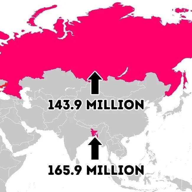 Очередной повод обсудить несоответствие территории и численности России подал сайт Reddit, который сравнил Россию и Бангладеш, одну из самых густонаселённых стран в мире.