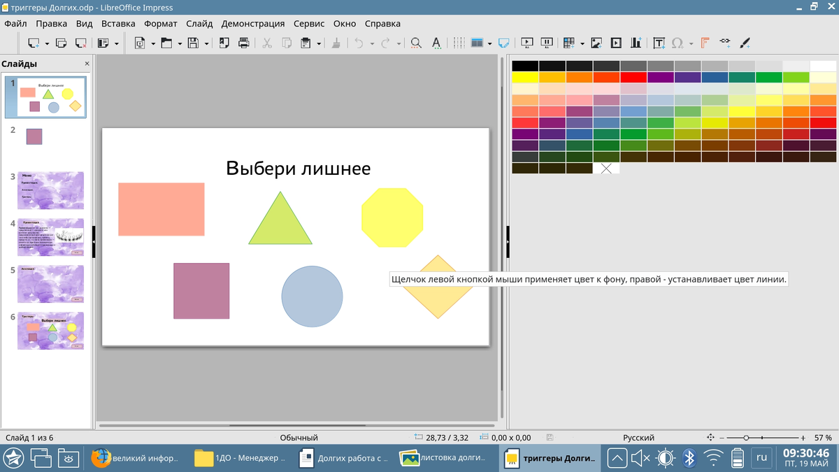 Триггер — это электронная схема, широко применяемая в регистрах компьютера для надёжного запоминания одного разряда двоичного кода. Как создать триггер? 1. Создаем пустой слайд. 2. Добавляем изображения для анимации. Для этого на вкладке Вставка в группе Изображения нажмите кнопку Рисунки. 3. Вставляем подсказки. Для этого выбираем меню Вставка — Фигуры — Выноска. 4. Создаем анимацию. Для этого выделяем фигуру с текстом, выбираем меню Анимация — Добавить анимацию — Появление. 5. Настраиваем триггер Для этого выделяем подсказку, далее Анимация — Область анимации — Триггер — По щелчку — Рисунок 3. Прикрепляю пример моей работы: Подробнее можно узнать тут: https://www.ispring.ru/elearning-insights/trigger-powerpoint