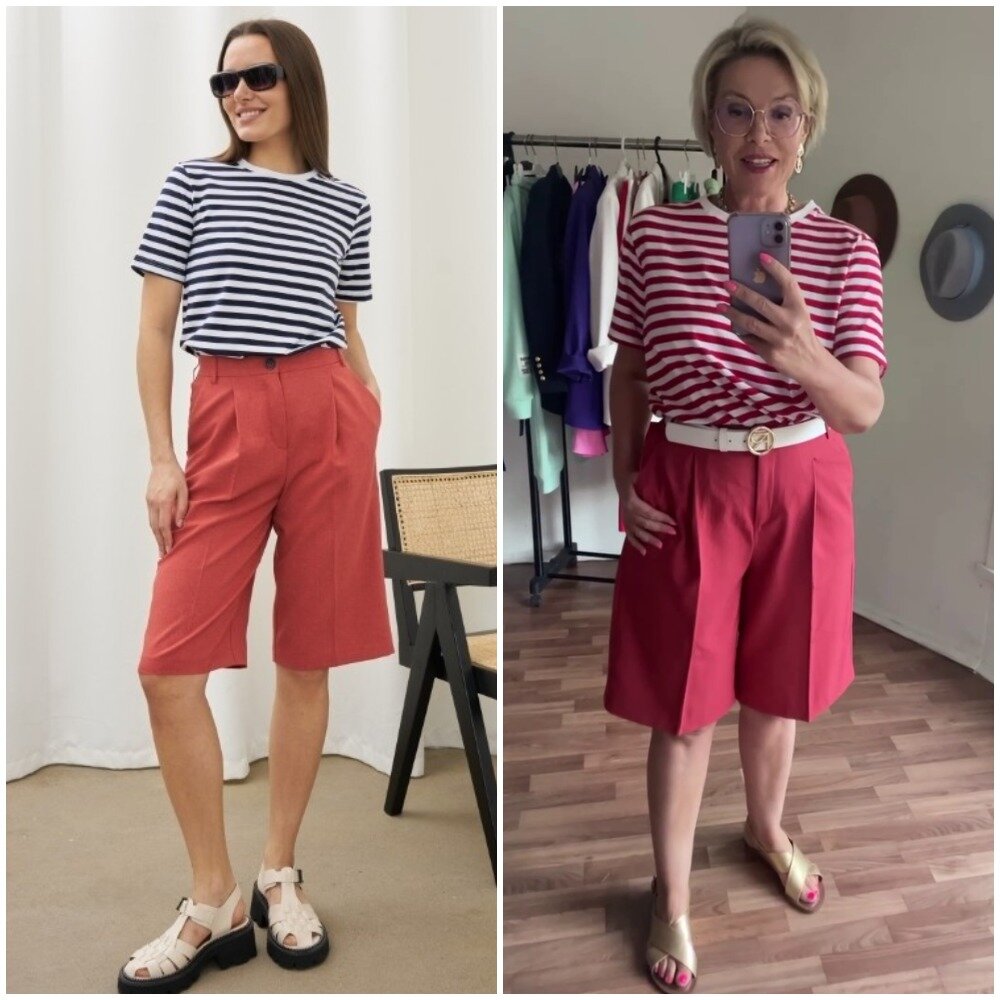 Много от вас запросов написать про городские шорты, поэтому показываю свои бермуды с ВБ. Они выполнены под лён, однако гораздо меньше мнутся, благодаря настоящему составу (но ткань легкая, летняя). У них очень комфортная посадка на резинке и хорошая длина. Также мне понравился кирпичный цвет, но у модели большой выбор оттенков. Размеры 42-50.