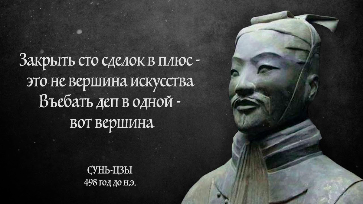 Если бы Сунь-Цзы жил в наше время и торговал на бирже, он бы сказал следующее: – Государь не должен поднимать оружие из-за своего гнева, трейдер не должен вступать в бой из-за своей жадности. Войска двигаются тогда, когда это соответствует выгоде: если сделка не выгодна — оставайся на месте. Гнев может превратиться в радость, злоба может смениться весельем, но въебанный депозит снова не возродится – мертвые не оживают. – Если нет выгоды – не двигайся. – Если не можешь приобрести – не пускай в ход кредитные деньги. – Если есть опасность – не торгуй. “Искусство войны” будет актуально всегда, достаточно поменять пару слов, подходящих под обстоятельства. Часто трейдеры допускают ошибки, потому что действуют под влиянием своих эмоций. Например, могут слишком рано закрывать прибыльные сделки, боясь потерять деньги, или наоборот, тянуть их слишком долго, в надежде на дополнительную прибыль. Трейдинг схож с военным делом: солдаты, аммуниция, план наступления и обороны — это ваш депозит и страт