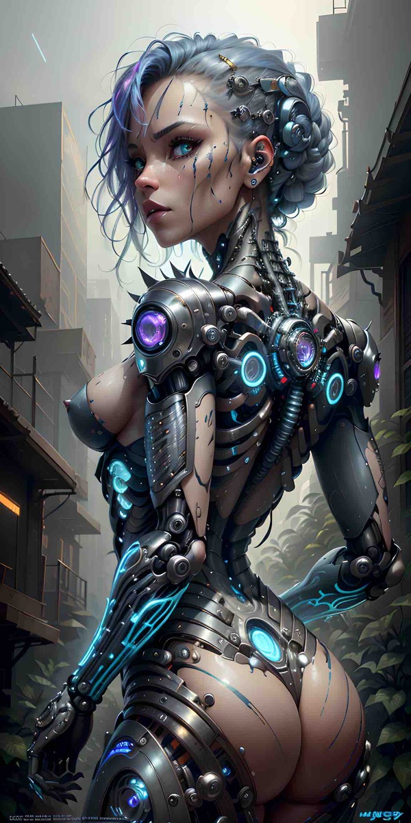 Body Modification - using high-tech methods to modify the body to enhance human abilities. In this cyberpunk-style concept design, we see a scene of human body modification through high-tech methods to enhance human abilities. A mechanical arm and smart chip have been implanted in the human body to increase strength and intelligence. The eyes have also been digitized, allowing the person to see the digital world. This scene emphasizes the importance of the integration of humans and technology in cyberpunk culture. Through body modification, humans can become more powerful and adapt to the environment of the cyberpunk world. The key phrase for this concept design is Body Modification - using high-tech methods to modify the body to enhance human abilities.