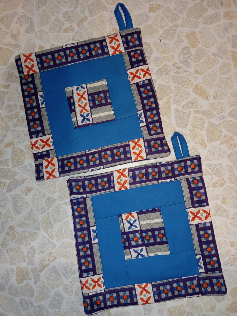 Прихватки "Синий квадрат" из ярких обрезков ткани.