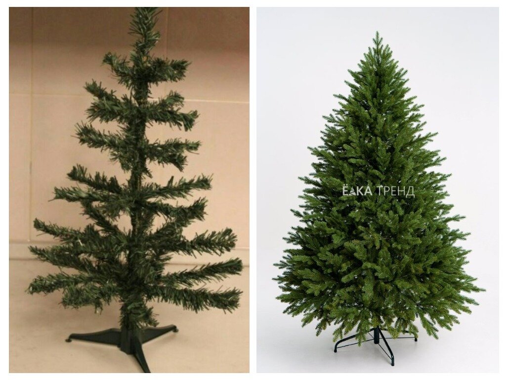 Литая искусственная елка имеет ряд преимуществ по сравнению с елкой из пленки ПВХ: