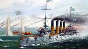 Крейсер "Варяг" был заложен в 1898 году в Филадельфии на верфях William Cramp and Sons и в 31 октября 1899 года крейсер был спущен со стапелей на воду, а в 1900 году был передан в ВМФ Российской империи, в 1901 году вступил в строй. После вступления в состав флота России "Варяг" базировался в Порт-Артуре. Подвиг моряков Крейсера Варяга навсегда вошел в историю русского флота, став одной из героических страниц неудачной для нас русско-японской войны 1904-1905 гг. Выдержав неравный бой с японской эскадрой и не спустив флага перед неприятелем, русские моряки, не сдались врогу и сами потопили свой корабль. Но уже в 1905 г. крейсер Варяг был поднят со дна бухты и использовался японцами как учебное судно с названием "Соя". Во время первой мировой войны Россия и Япония были союзниками. В 1916 г. крейсер был выкуплен и включен в состав российского ВМФ с таким же названием "Варяг". В феврале 1917 г. Варяг ушел на ремонт в Великобританию, где был конфискован британцами, поскольку новое советско