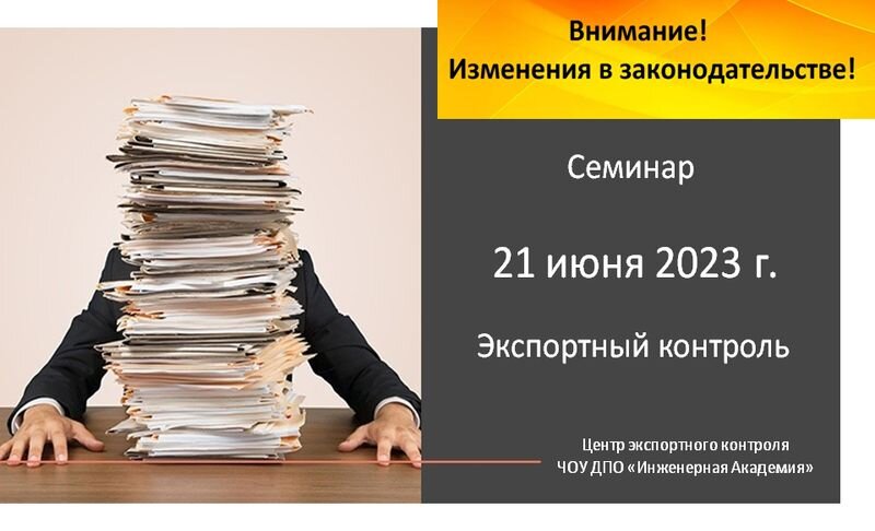 Приглашаем 21 июня 2023 г. на семинар «Изменения законодательства РФ в области экспортного контроля» Законодательство Российской Федерации с 29.03.2023г. ужесточило ответственность участников ВЭД за нарушение норм и правил экспортного контроля. На семинаре Вы узнаете и научитесь, как избежать административной, уголовной ответственности, внеплановых проверок ФСТЭК России, получите ответы на все интересующие вопросы. За вывоз контролируемых товаров и технологий без лицензии или разрешения, даже в страны ЕАЭС назначаются штрафы: на юридическое лицо в размере стоимости вывезенного товара с его конфискацией (ст. 14.20 КоАП РФ);