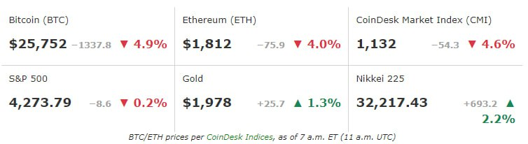 ▫️ В своём иске SEC назвал многие монеты незарегистрированными ценными бумагами, вследствие чего ETH упал более чем на 5%, а токены ADA, Matic. BNB, SOL, DOGE упали более чем на 8%. Рыночный индекс CoinDesk, измеряющий результативность рынка криптовалют, упал более чем на 6%, при этом все шесть секторов оказались на отрицательной территории. Криптовалютный индекс страха и жадности остался нейтральным.