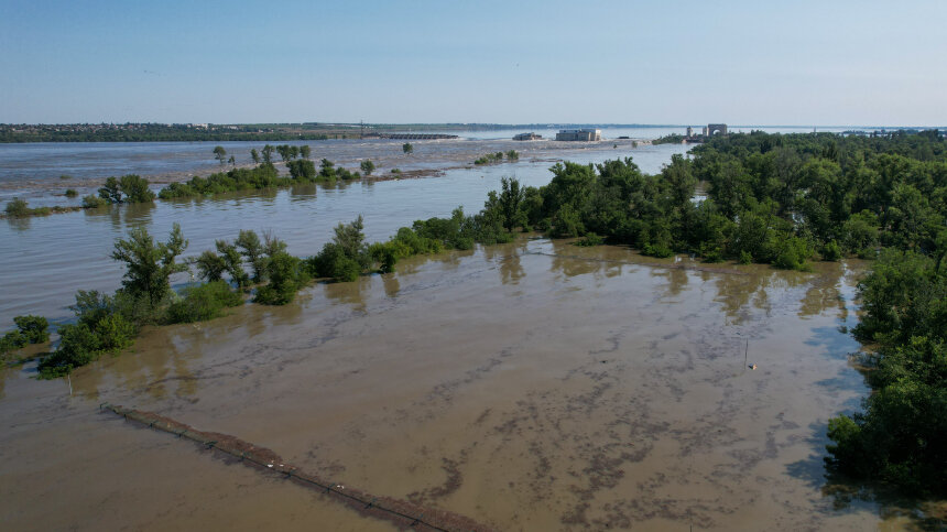 Каховская ГЭС почти полностью ушла под воду — эксклюзивные кадры