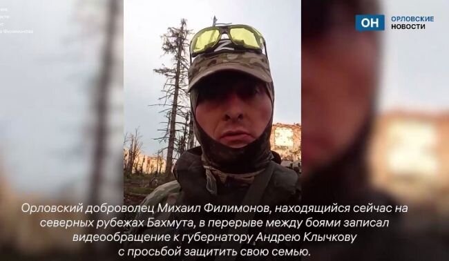Орловский доброволец из Бахмута попросил Клычкова защитить в Орле его семью: видео