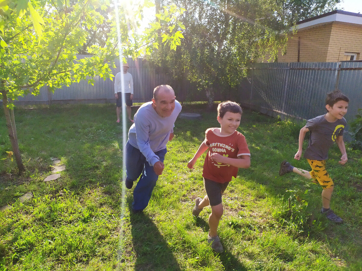 Я знаю четырех людей на состояние которых я в свои 35 смотрю как на маяк, что жизнь и в 84 года может кипеть ! И мне не страшно стареть. Активная, здоровая жизнь после 60 лет, это выбор! И прежде всего жизнь без обид, излишних эмоций, умения держать себя в адекватном и спокойном состоянии. Этому я пока учусь. Мой свекр на выходных играх с сыном именинником и двумя из 5 внуков в футбол. Ему через пару недель 71 год. Я не могла это не запечатлить и любовалась ими. Это те моменты которые хочется оставить в памяти навсегда и никогда не забывать. Дети были в восторге. На лицах всей семьи была искрящаяся радость. У свекра два сына с любимыми профессиями и семьями. По моему мужу 2 внука, по другому сыну, 2 внука и внучка. _____________________________ Весной мы познакомились с мужчиной 79 лет. Это было на территории где под его шефством было посажено 400 деревьев, мы тоже посадили там 22 дерева. А наши тренингованные друзья сделали там два проекта по благоустройству - лавочки и детскую пл