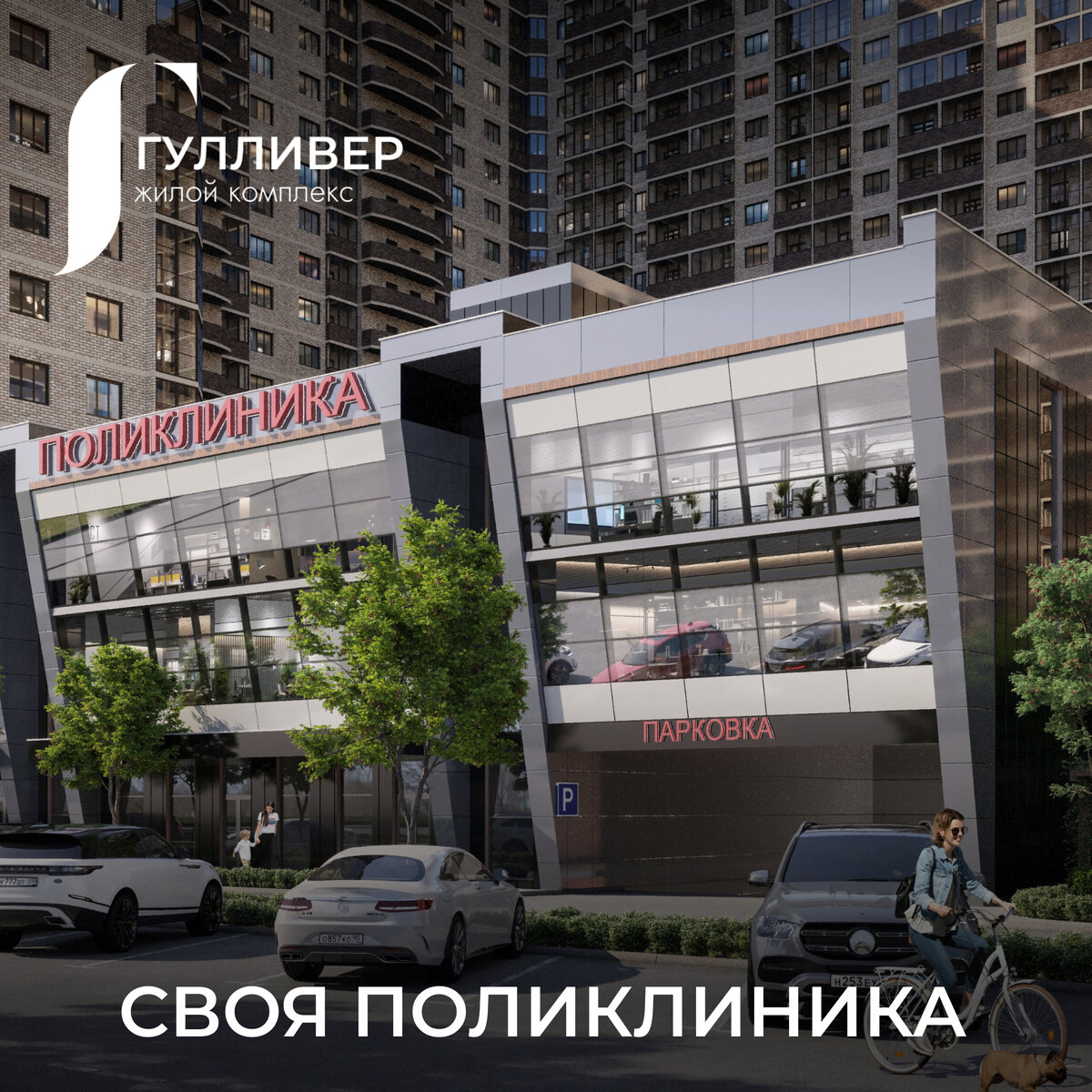 Желаем счастья, любви, успехов, а главное - здоровья!.. Мы тоже считаем, что здоровье - это главное. без него не в радость ни успехи в работе, и сил на любовь тоже остается маловато. А сейчас многие люди часто стараются максимально оттянуть поход в поликлинику - из-за отсутствия времени и особенно от нежелания стоять в очередях. Но в Краснодаре есть ЖК, в котором поликлиника сразу же запроектирована и строится наравне с жилыми секциями - ЖК "Гулливер" на ул. Российской, 257/7. Трехэтажная пристройка фасадом направлена в сторону ТЦ "Лента", так что во двор лишние люди не зайдут, а для жителей - максимально удобно. Подробности ТУТ