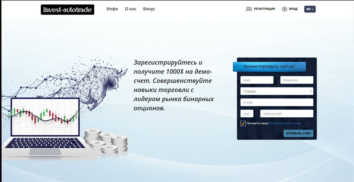 Привет дорогой читатель, наша сегодняшняя статья будет посвящена крупному брокеру Invest-autotrade. На просторах интернета ходит очень много , как положительной информации так и отрицательной , от тех же конкурентов , о брокере. Но люди, которые давно торгуют на данном брокере , решили показать настоящее лицо брокера, которые хотели спрятать его конкуренты. На просторах ютубе появились видео , на которых юзеры ( так мы будем их называть) брокера показали как сами зарабатывают на торговле и так хорошо нашумевшем роботе, который появился на Invest-autotrade давно. Обзорщик полностью рассказал и показал как нужно работать с роботом, дал краткую информацию на счёт торговли и где это уместно. Сами конкуренты небось кусают логти, так как их планы порушились ,и теперь они не смогут скрыть от людей, честное лицо брокерской компании Invest-autotrade. Само видео вот : Советую к просмотру. Всем удачи, хорошей торговли