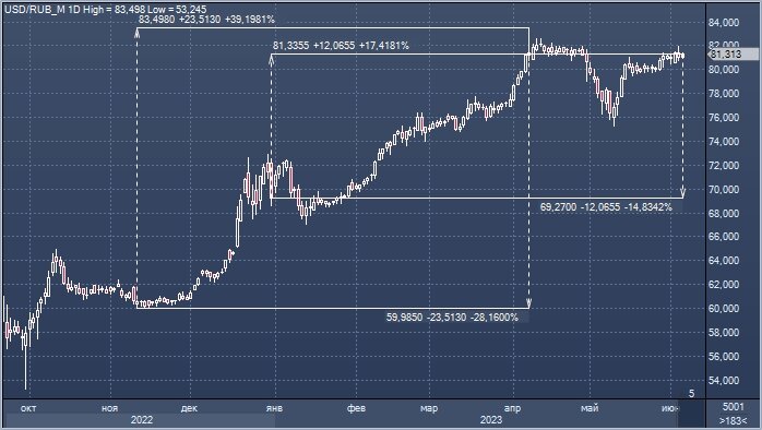 На этом фоне консенсус по-прежнему предполагает плавное ослабление рубля в среднесрочной перспективе — в среднем 76,9 рубля за 1 доллар в 2023 году, 77,9 рубля в 2024 году и 79,5 рубля в 2025 году.