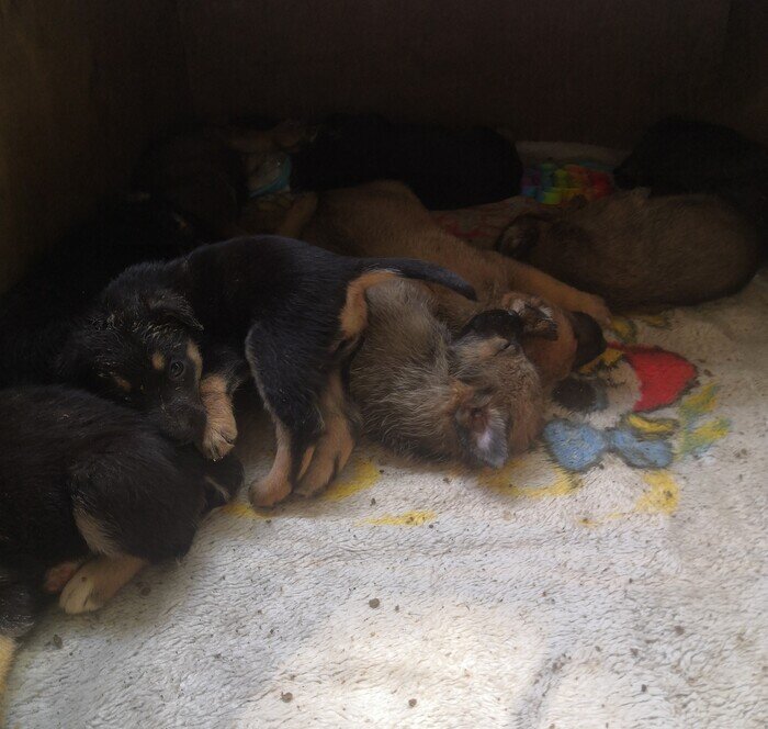Добрый день всем. Место действия г. Сочи (если это важно). Супруга, 31 мая утром пошла вынести мусор, около мусорного контейнера была коробка в которой было шевеление, там было семь щенков и после нашлось ещё, в итоге 10 шт. Контейнера находятся возле проезжей части, где проезжает достаточное количество машин и частая картина, это раздавленные тушки голубей, которых подкармливают "добрые" люди. Было принято решение забрать на передержку к себе. У нас на доме установлены камеры видео наблюдения, и мы вычислили авто и госномер этого человека, который таким способом избавился от ненужного потомства. Так же есть и адрес проживания и номер телефона. Человек возрастной, по телефону, послал в пешее эротическое, факт, что это он сделал отрицает. Малых накормили, помыли, временный вольер построили. Их много и требуют много внимания. Себе мы их оставить не можем. В приютах их не ждут. Через объявления в соц. сетях и авито откликов нет. Ну это и понятно, кому нужны дворняжки. В связи с этим, я об