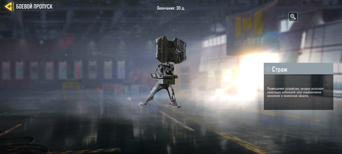 Первое с чего я хочу начать свой обзор так это с новой серии очков в режиме сетевой игры «Страж». Ее описание в игре такое «Размещаемое устройство, которое выпускает наносящее небольшой урон радиоактивное излучение в конической области». В первой части обзора сезона про боевой пропуск я уже описывал бесполезность данной серии очков в сетевой игре, поэтому кратко, бесполезная ерунда, играть нет смысла с ней. Данное «чудо инженерной техники» доступно в бесплатном боевом пропуске на 14 этапе. Открываем ее и… «начинаем нагибать рейтинг как ПРОбатька суперпупердупер нагибатор 5000, используя сие творение в рейтинге, вам не будет равных с этой триногой, враги будут ВАС бояться и ливать с катки…» - кххм, не отсюда, открыли и забыли.